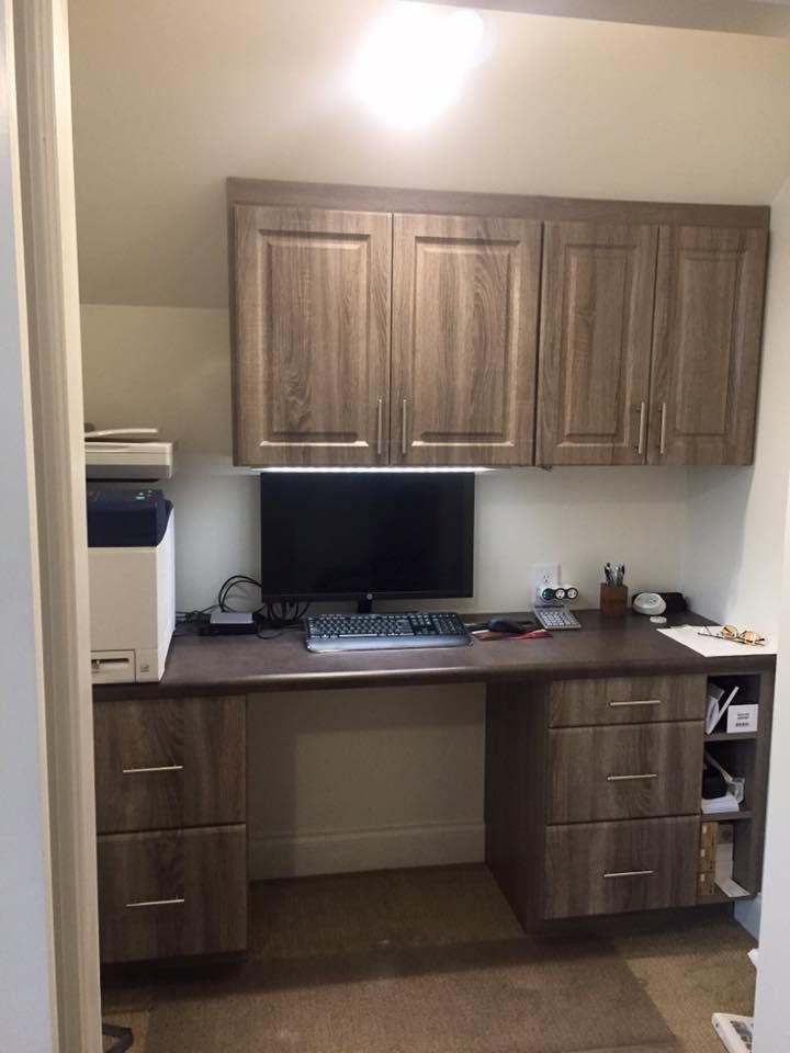 The family-owned company is fully insured and has been providing custom storage solutions since 2014. Installation includes securing cabinets and shelving to wall studs, leveling all components, and confirming that doors and drawers operate smoothly. Office storage systems do not include desktops, electrical wiring, or built-in lighting, and the company focuses on cabinetry and shelving rather than furniture assembly.
