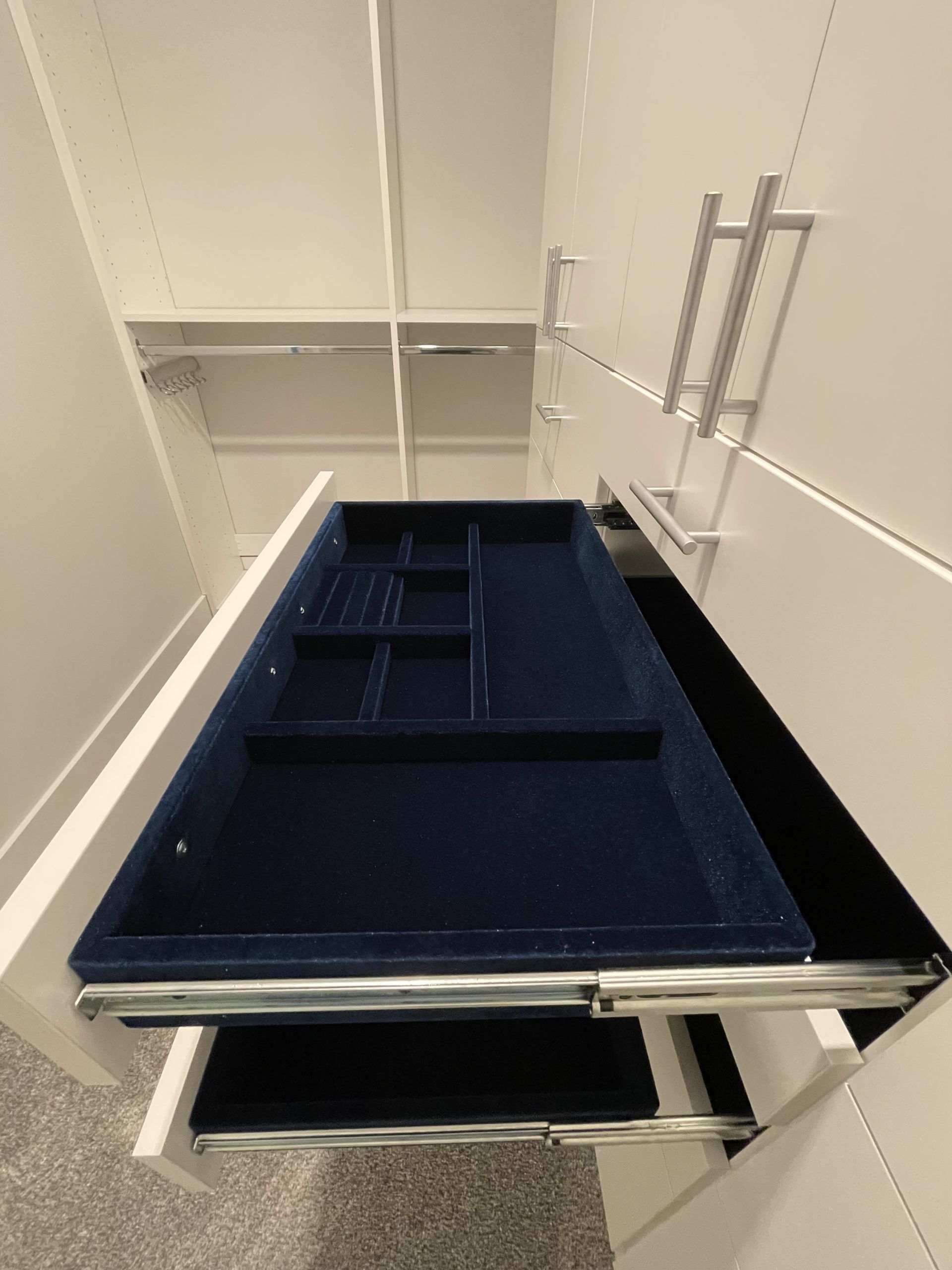 Affordable Closets installed my master closet and pantry. Melissa and Steve were great to work with and I am very happy with both designs. Their price undercut the competition but I don’t feel that I compromised on quality. Love my jewelry tray inserts!